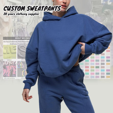 Oversized Two Piece Set Women Solid Color Sports Tracksuit Cropped Zip up Hoodie Sweatpants Jogger Custom One Stop Manufacturer